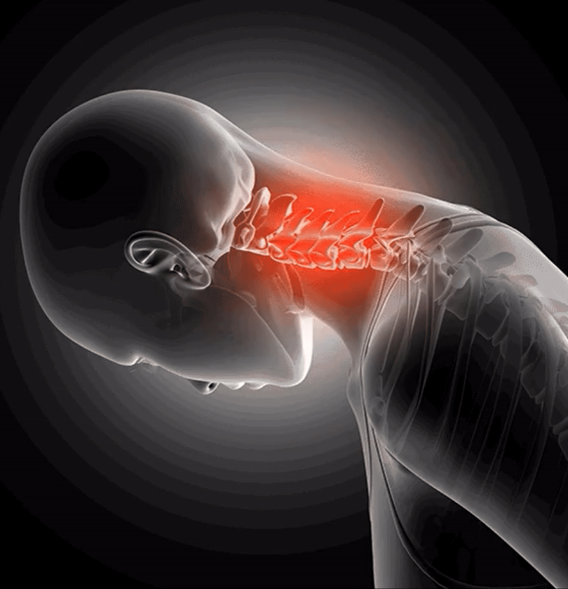 Years of hard work, prolonged sitting & bad posture apply damaging tension to our cervical spine, deteriorating the healthy curve in our neck. This causes our cervical discs to squeeze out of place & put pressure on the nearby nerves, which leads to excruciating pain in the neck, shoulders, upper back, arms, and even contributes to TMJ and tension headaches.